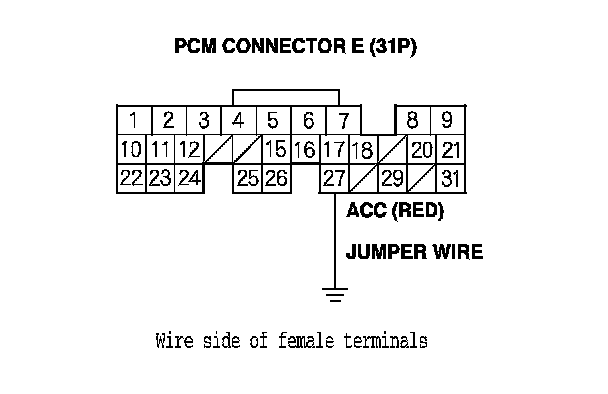 9. Momentarily connect PCM connector terminal E27 to body ground with a jumper wire several times.