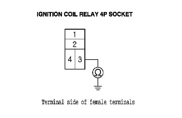 3. Measure the voltage between ignition coil relay 4P socket terminal No. 1 and body ground, then terminal No. 4 and body ground.