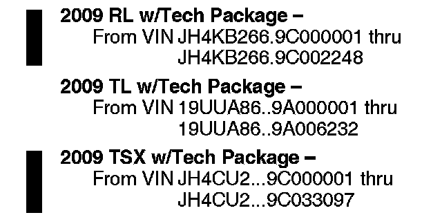 ^ Under BACKGROUND and VEHICLES AFFECTED, early production 2009 RLs and TSXs with Tech Package have been added.