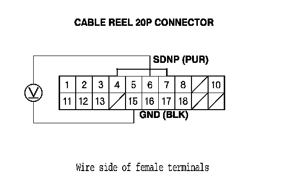 7. Measure the voltage between cable reel 20P connector terminals No. 6 and No. 15.