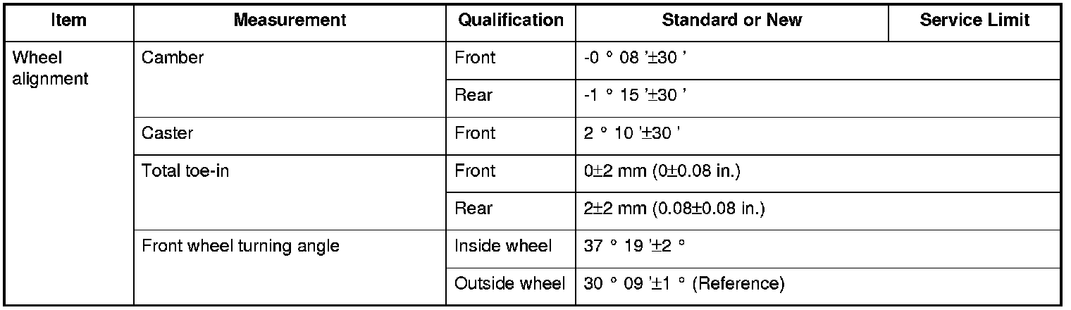 Wheel alignment Specifications