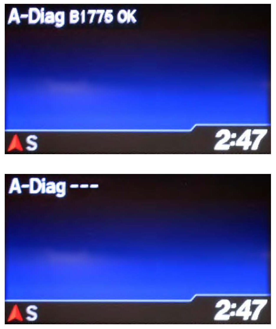 4. Press and hold the PHONE button for at least 5 seconds to enter the HFL diagnostic mode. One of the following screens appears: "A-Diag XXXXX OK" or "A-Diag---."
