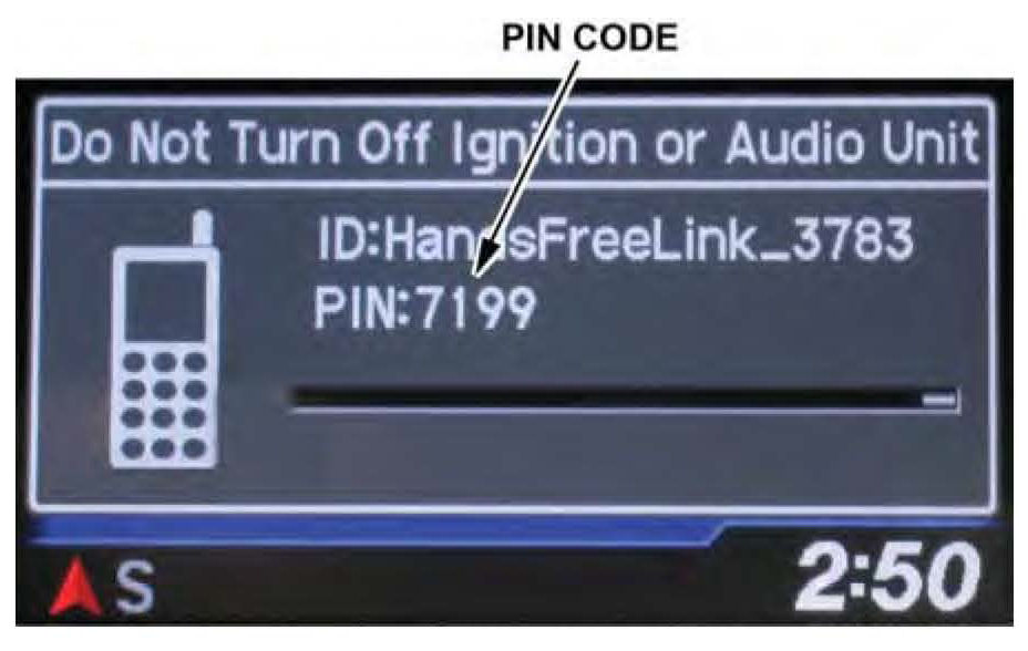 7. Press the selector knob on the audio unit to change the HFL update screen. A four-digit PIN code appears. Write it down on a piece of paper or on the RO, and leave it in the vehicle.