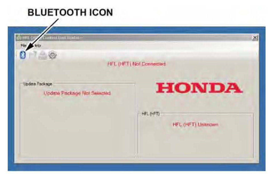 8. In the HFL update tool, click on the Bluetooth icon in the upper left-hand corner of the HFL Control Unit Update screen to prepare the HDS laptop for the pairing process with the vehicle's HFL control unit.