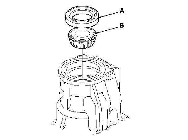 11. Remove the oil seal (A) and the tapered roller bearing (B) from the transfer housing.