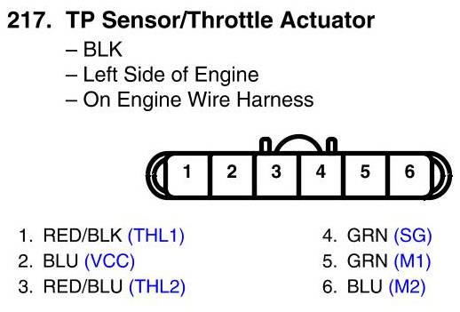 View 217 - TP Sensor/Throttle Actuator Connector View