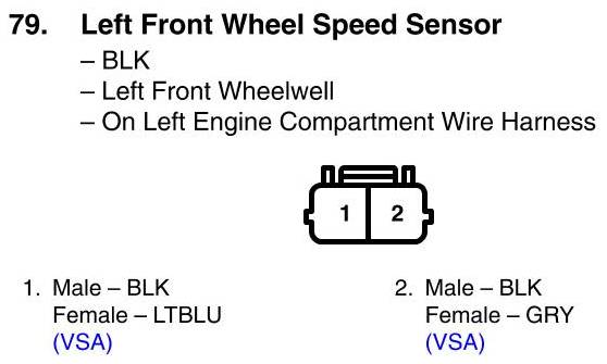 View 79 - Left Front Wheel Speed Sensor Connector View