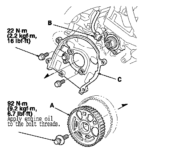 3. Disconnect the CMP sensor connector (B), then remove the back cover (C).
