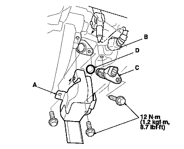 5. Install the parts in the reverse order of removal with a new O-ring (D).