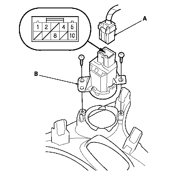 2. Disconnect the 10P connector (A) from the engine start/stop switch (B).