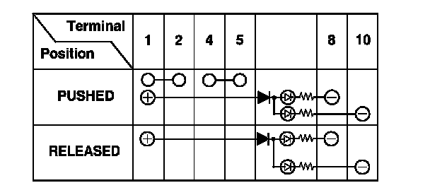 4. Check for continuity between the terminals in each switch position according to the table.