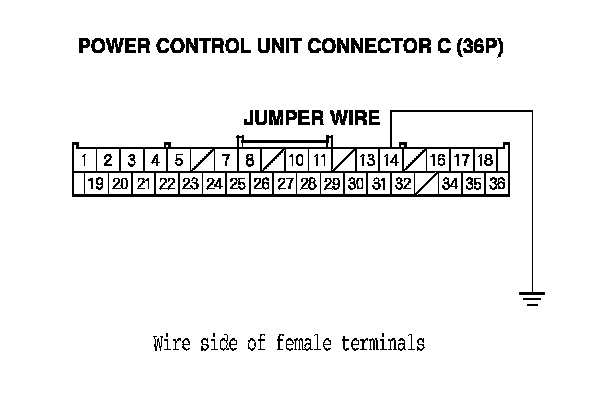 6. Connect power control unit connector C (36P) terminal No. 14 to body ground with jumper wire.