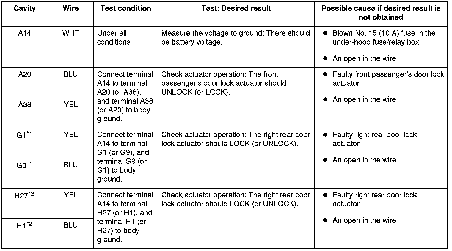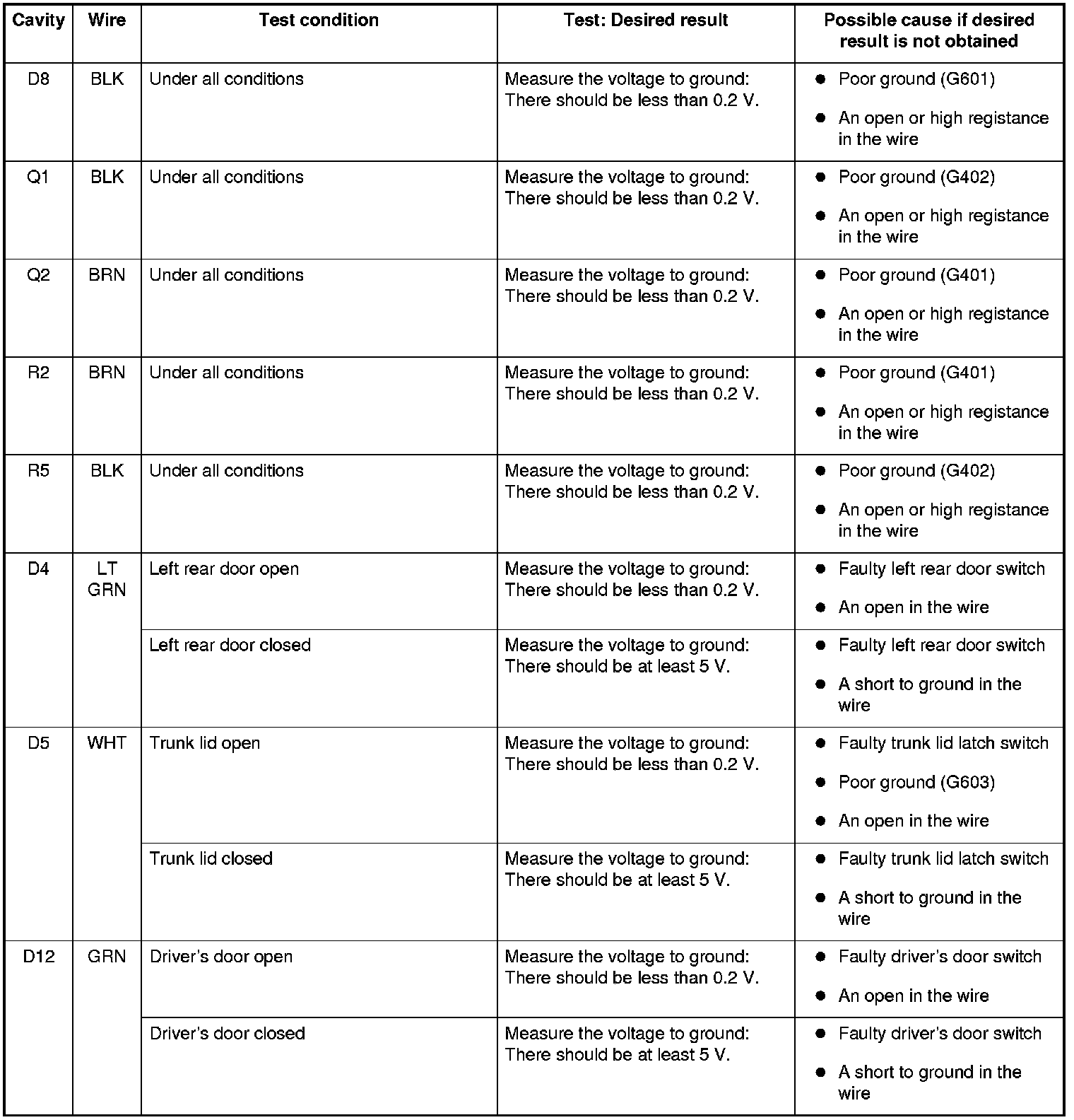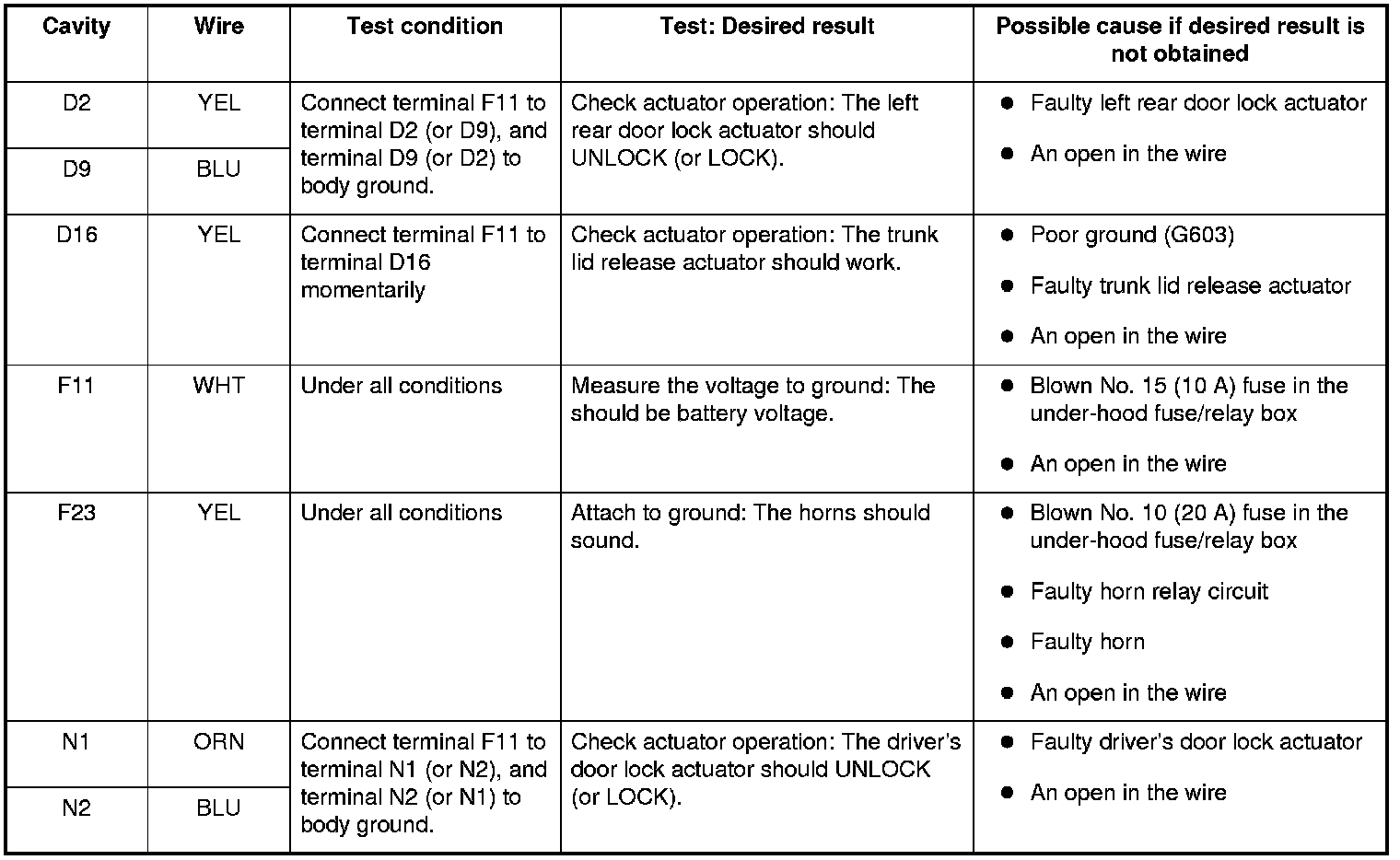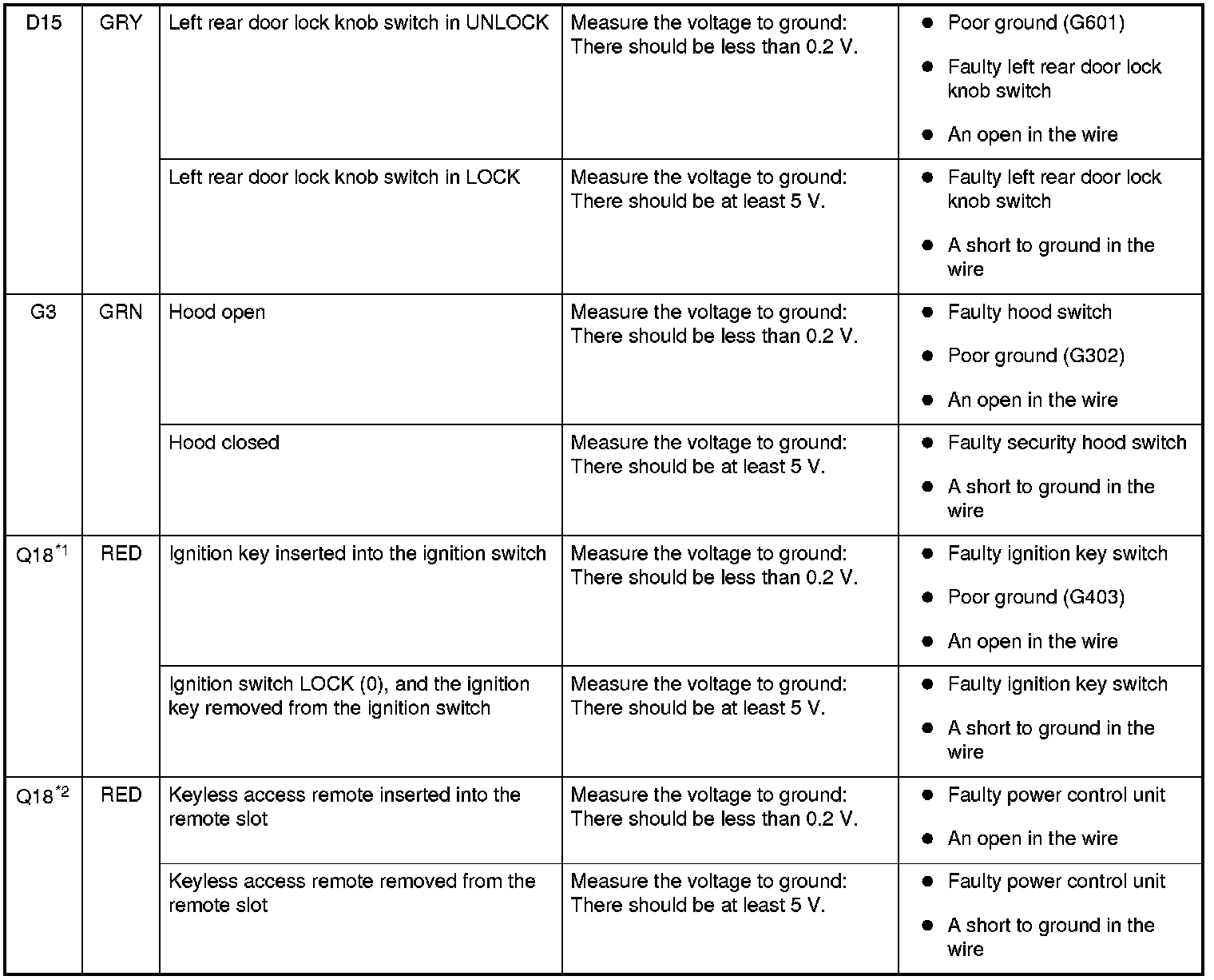 Keyless/Power Door Locks/Security System Control Unit Input Test