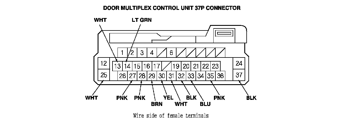 18. Reconnect the 37P connector to the door multiplex control unit, and do these input tests at the following connector.