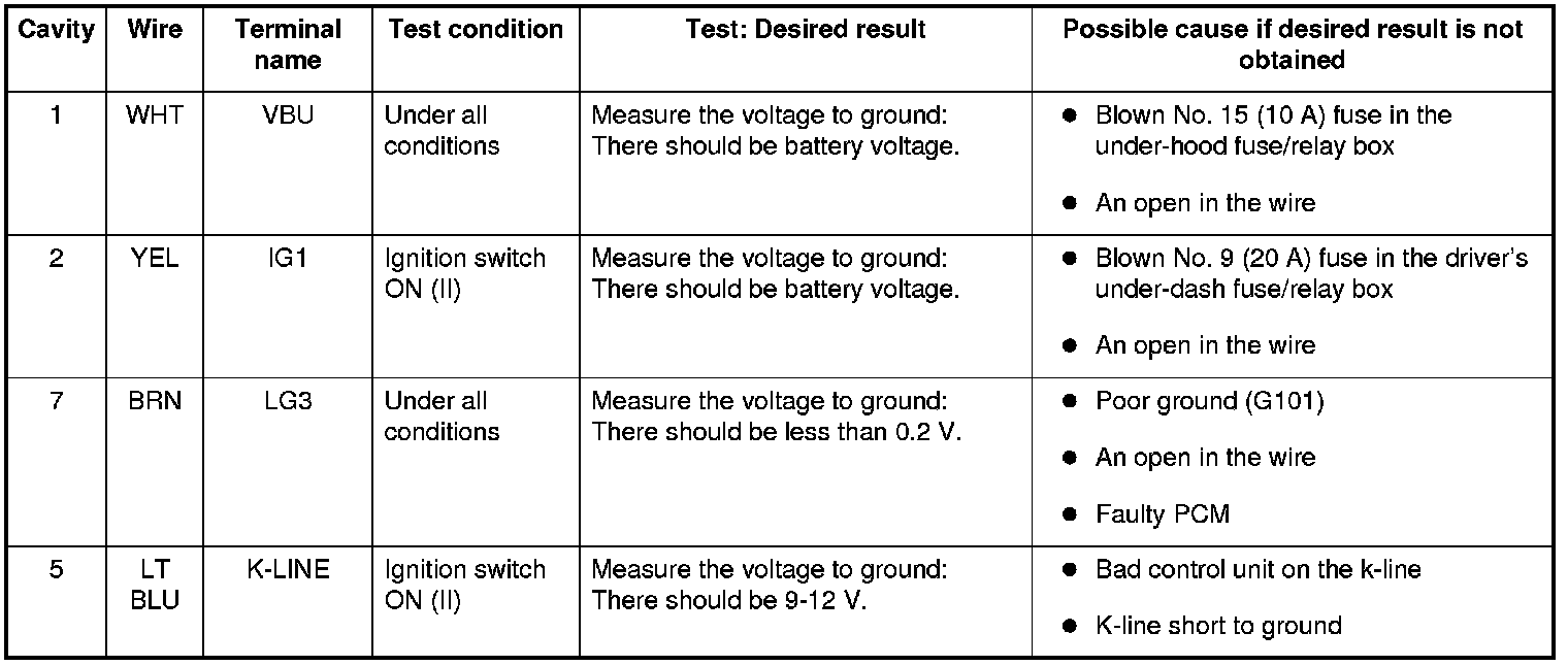 NOTE: Before testing, troubleshoot the multiplex integrated control unit first, using B-CAN System Diagnosis Test Mode A. Troubleshooting - B-CAN System Diagnosis Test Mode A