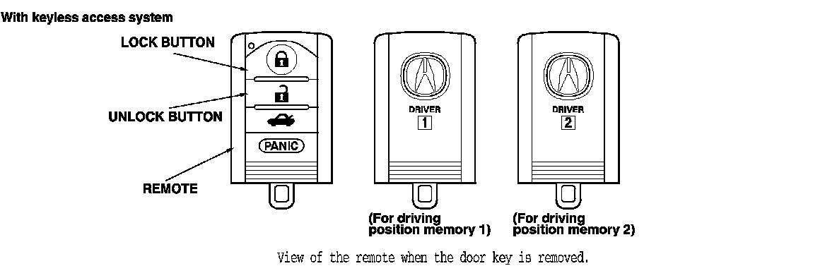 After the seat and mirror positions have been memorized, the seat and mirror will move to the position when the appropriate remote UNLOCK is pressed and the driver's door is opened. When the seat and mirrors move to the memorized position, the green LED corresponding with that remote will stay lit until the position is changed or the key is turned to LOCK (0), or engine start/stop button is pressed to select the OFF mode.