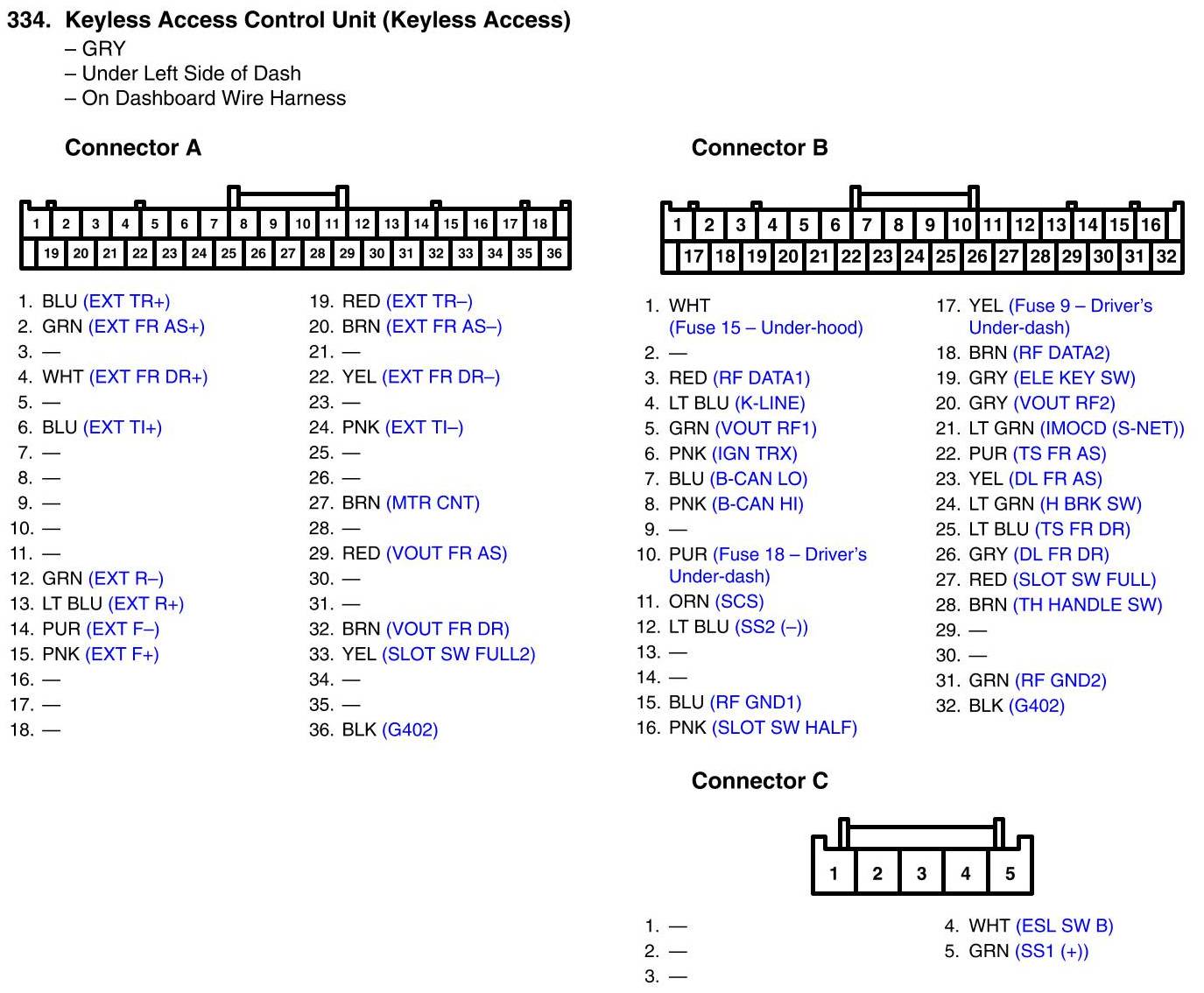 Keyless Access Control Unit Connector View