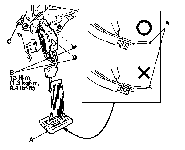- Make sure that the accelerator pedal module and the clip are secure.