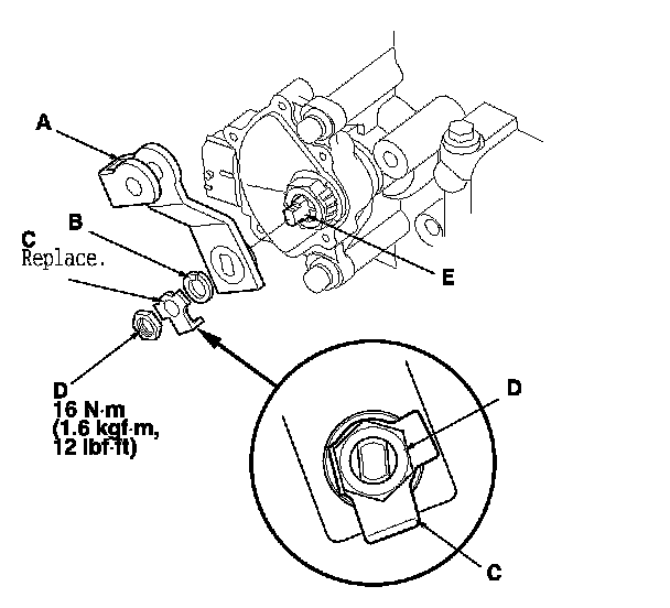 16. Tighten the bolts (E) securing the transmission range switch to 12 N-m (1.2 kgf-m, 8.7 lbf-ft).