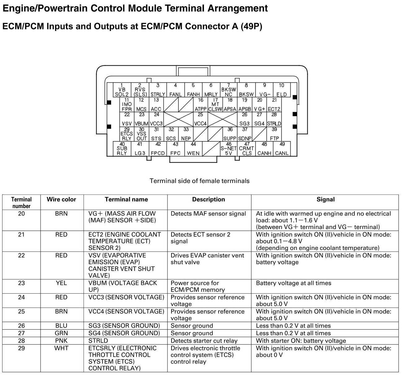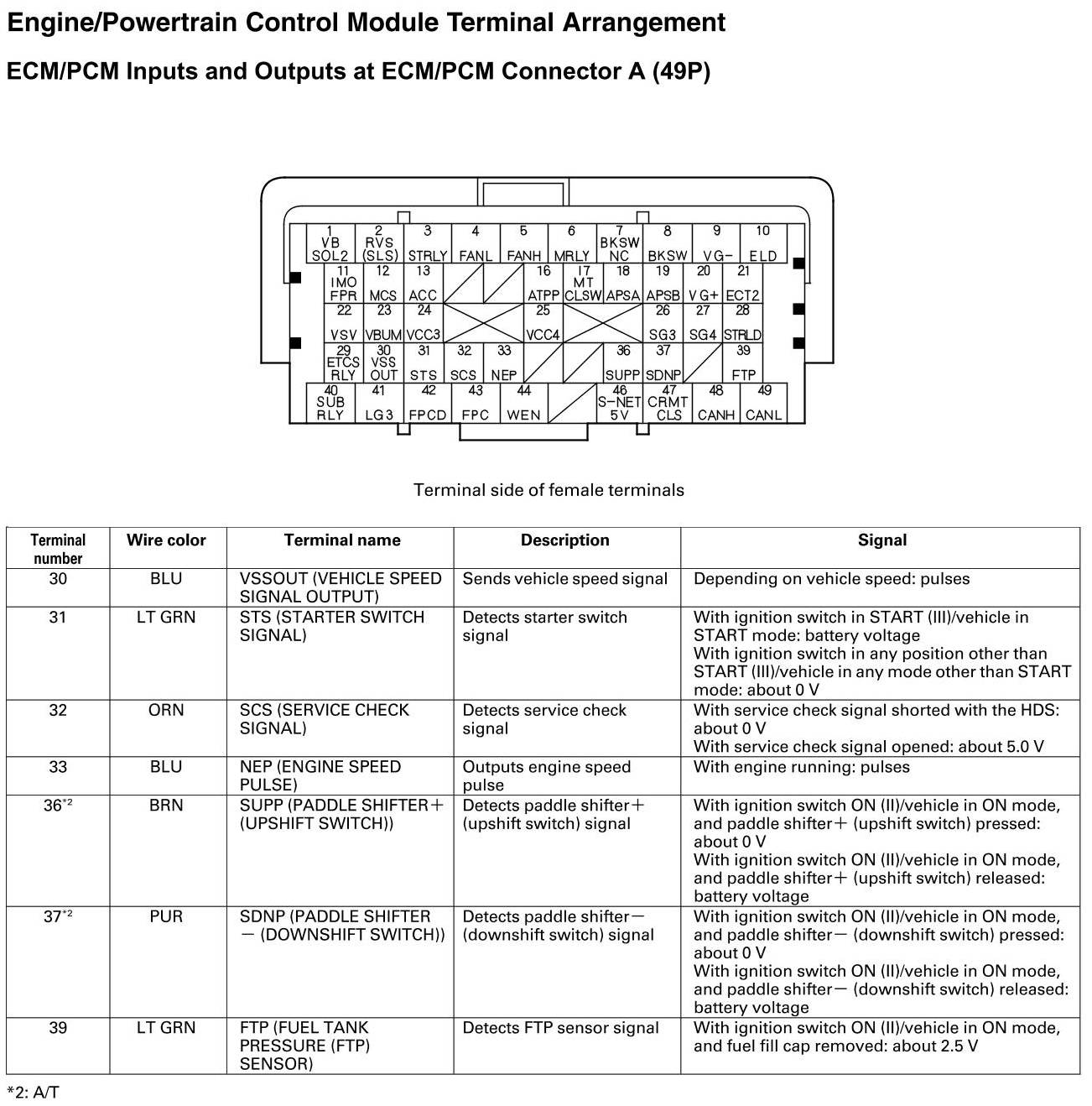 ECM/PCM Inputs and Outputs at Connector A