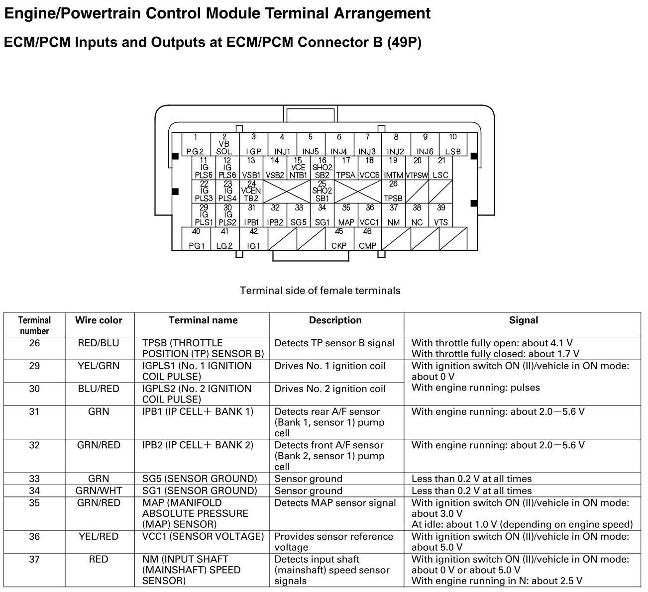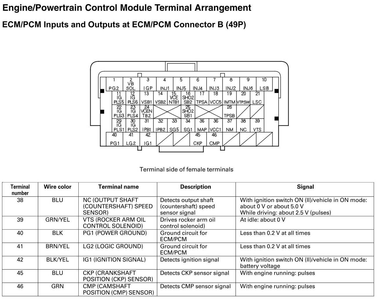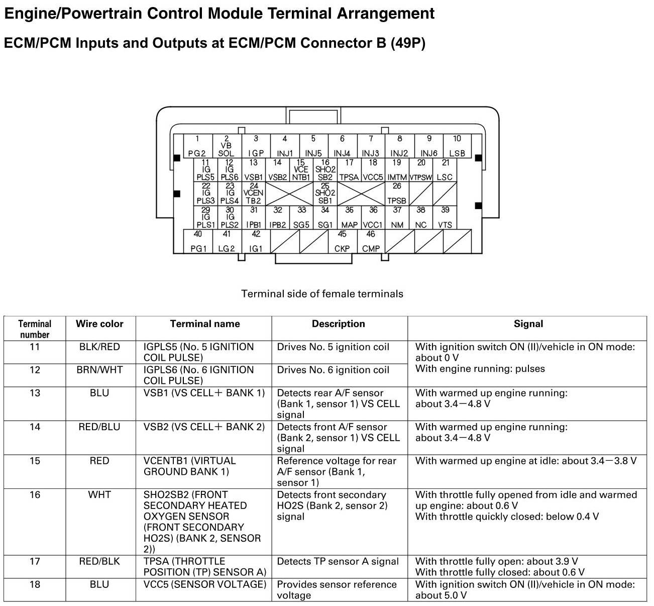 ECM/PCM Inputs and Outputs at Connector B
