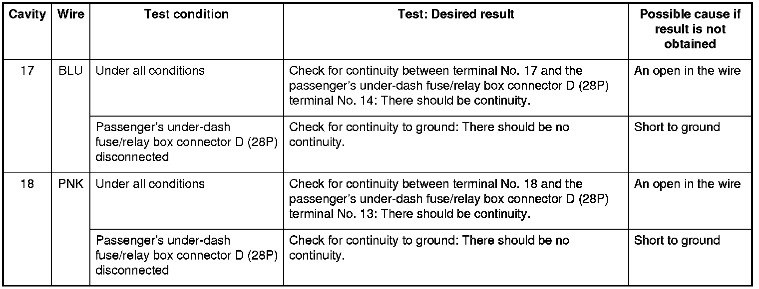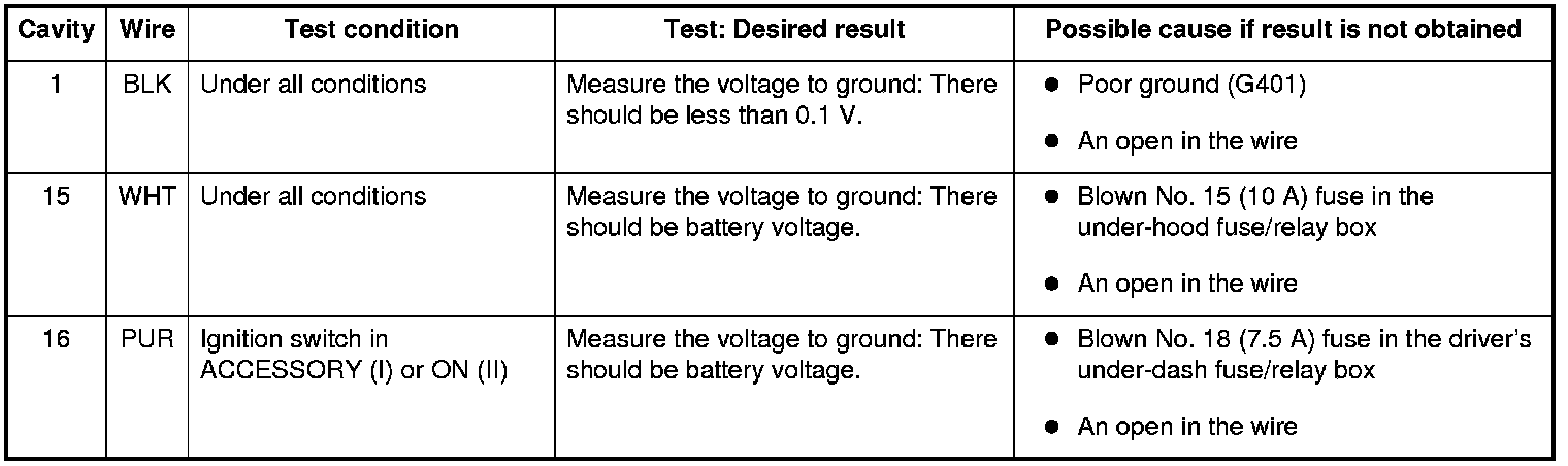 4. Reconnect the connector, and make these input tests at the connector.