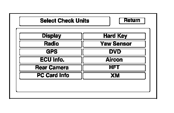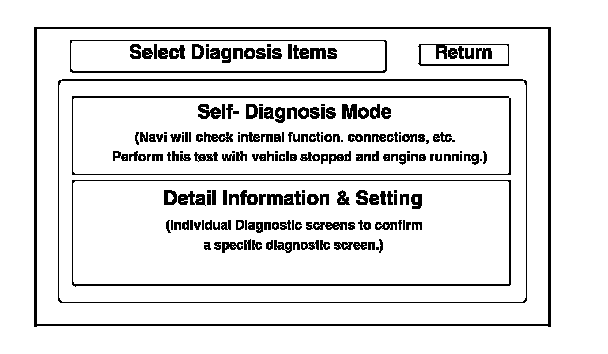 This screen looks for problems in the navigation unit. When you initiate this diagnosis, the navigation unit may freeze or delay up to a minute while the diagnosis runs.