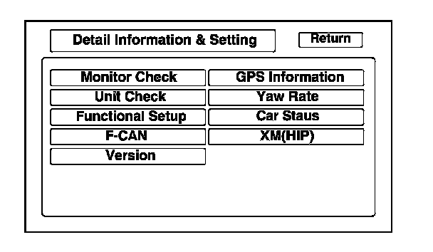 - Detail Information & Setting (allows you to manually diagnose the navigation system)