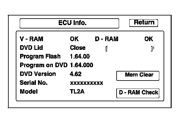 - If V-RAM or D-RAM is NG, replace the navigation unit. Service and Repair