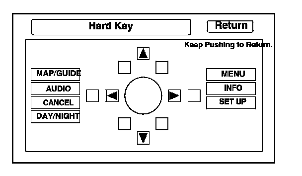 Start the vehicle, and at the disclaimer screen use the navigation display hard buttons as described below: