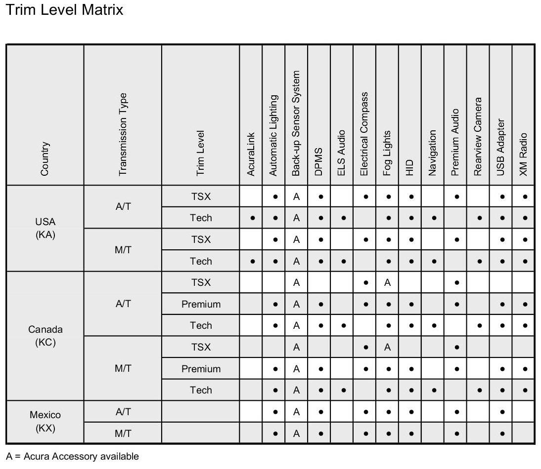 ETM Trim Level Matrix