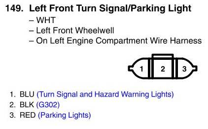 View 149 - Left Front Turn Signal/Parking Light Connector View