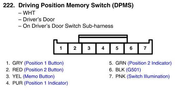 View 222 - Driving Position Memory Switch Connector View (DPMS)