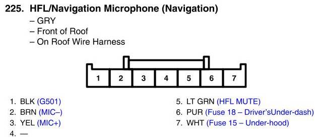 View 225 - HFL/Navigation Microphone Connector View (Navigation)