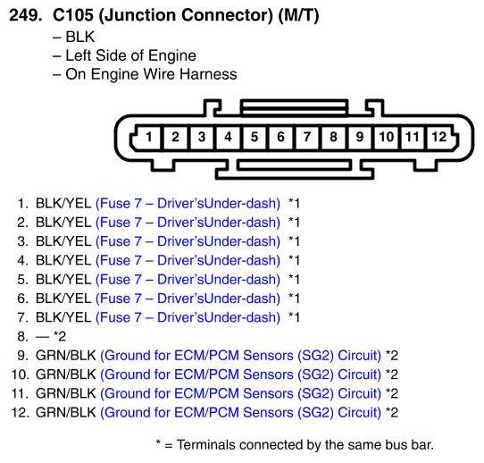 View 249 - C105 (Junction Connector) Connector View (M/T)