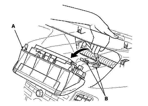 3. Disconnect the connectors (B), and remove the audio-HVAC display unit.