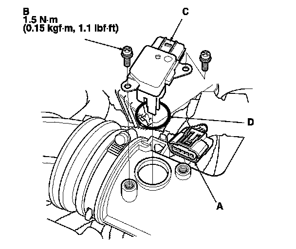 3. Remove the MAF sensor/IAT sensor (C).