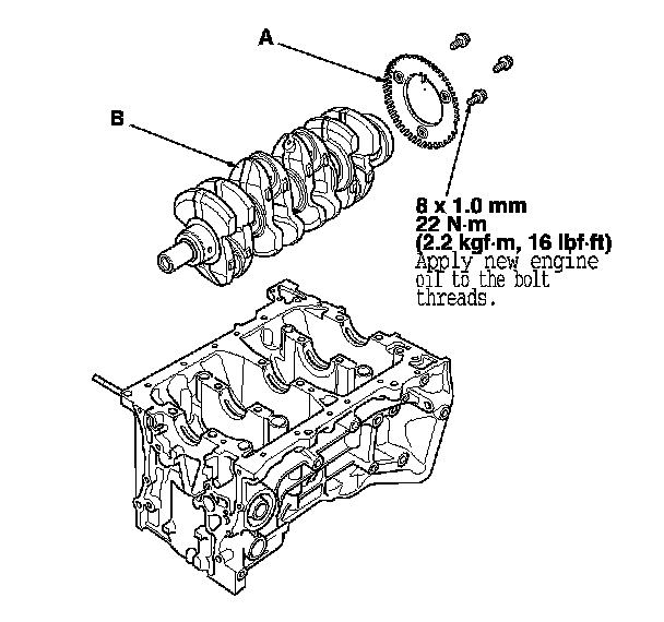 2. Remove the crankshaft position (CKP) pulse plate (A) from the crankshaft (B).