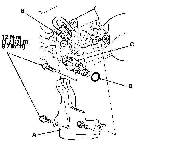 5. Install the parts in the reverse order of removal with a new O-ring (D).