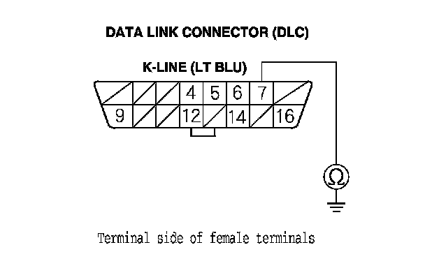 19. Check for continuity between DLC terminal No. 7 and body ground.