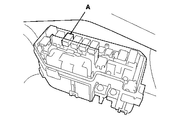 66. Remove PGM-FI main relay 1 (A) from the under-hood fuse/relay box.