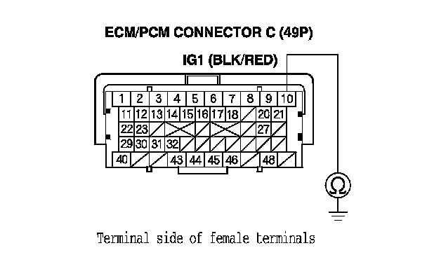 51. Check for continuity between ECM/PCM connector terminal C10 and body ground.