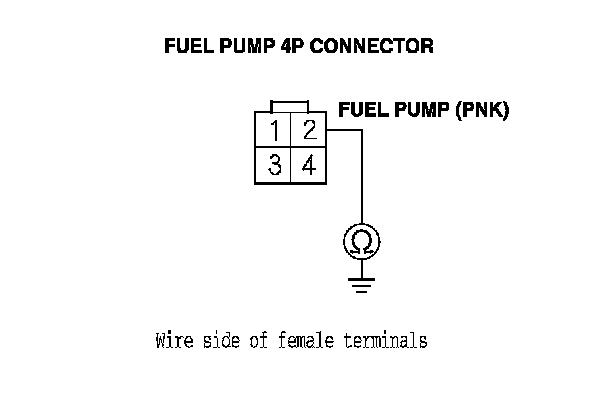 55. Check for continuity between fuel pump 4P connector terminal No. 2 and body ground.