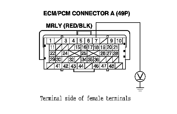YES - Test PGM-FI main relay 1. Testing and Inspection If the relay is OK, reconnect all connectors, then update the ECM/PCM if it does not have the latest software, ECM/PCM Update or substitute a known-good ECM/PCM, Initial Inspection and Diagnostic Overview then recheck. If the symptom/indication goes away and the ECM/PCM was updated, troubleshooting is complete. If the symptom/indication goes away and the ECM/PCM was substituted, replace the original ECM/PCM. ECM/PCM Replacement (A/T)