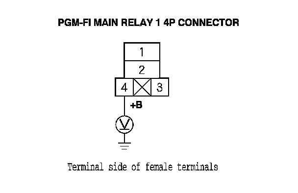 63. Measure the voltage between PGM-FI main relay 1 4P connector terminal No. 4 and body ground.