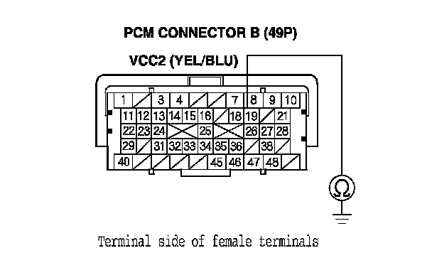 74. Check for continuity between PCM connector terminal B19 and body ground.