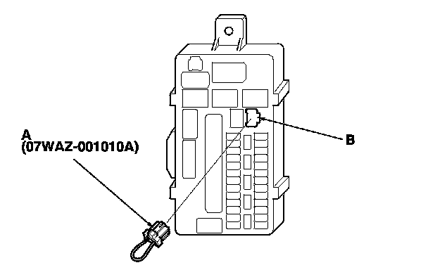 4. Connect the MPCS service connector (A) to the MICU service check connector socket (B) in the driver's under-dash fuse/relay box.