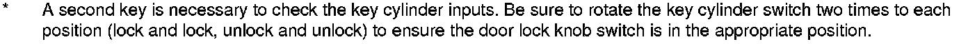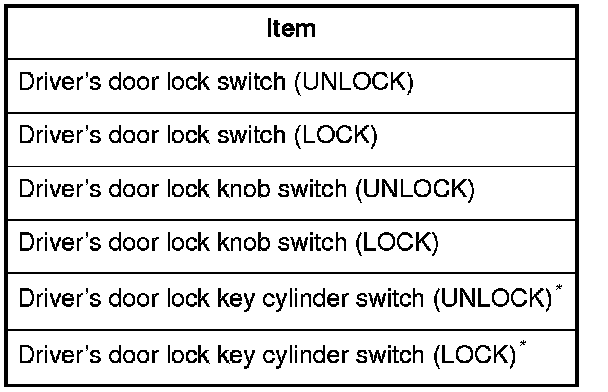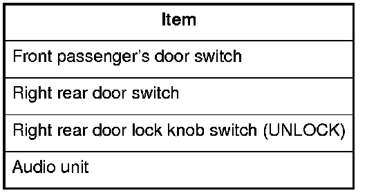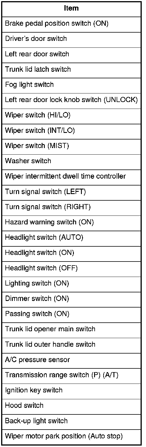 12. The following tables list the circuits that can be checked in Test Mode 2. Operate the switch that is most closely related to the problem. If the circuit is OK, the ceiling light will blink once. If the circuit is faulty, there will be no indication.