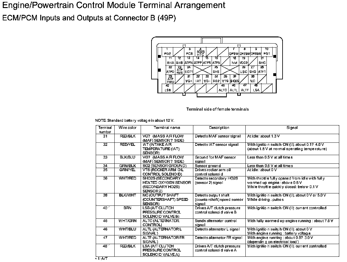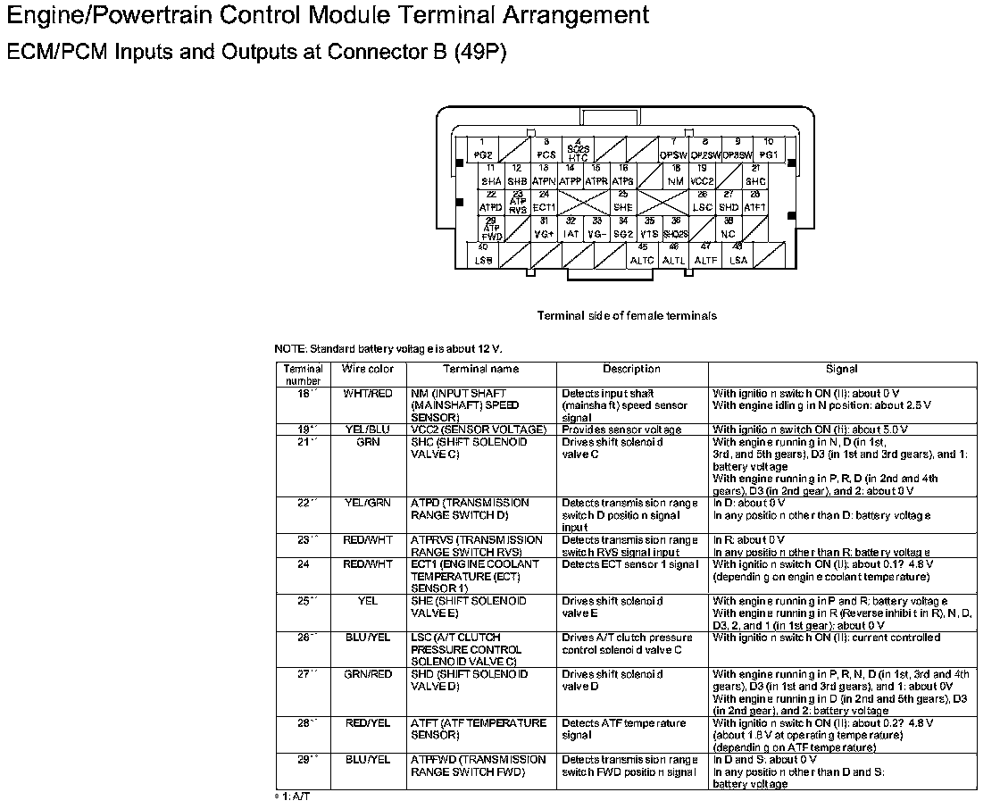 ECM/PCM Inputs And Outputs At Connector B
