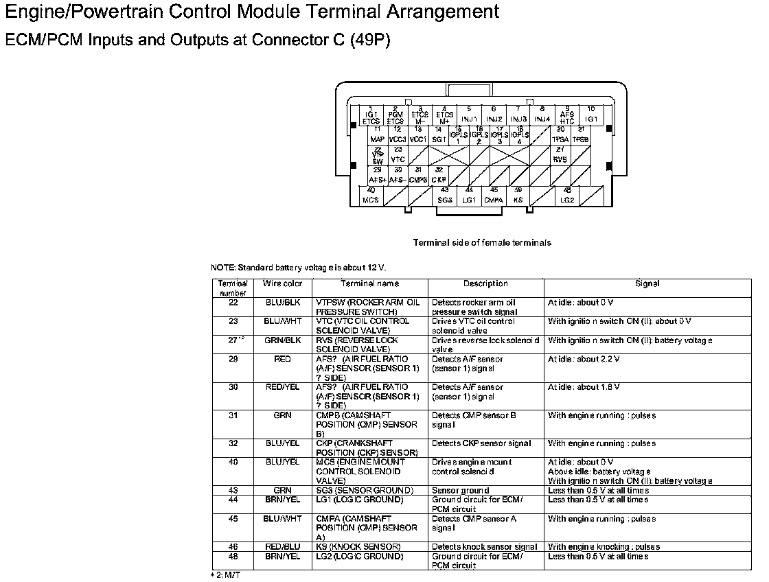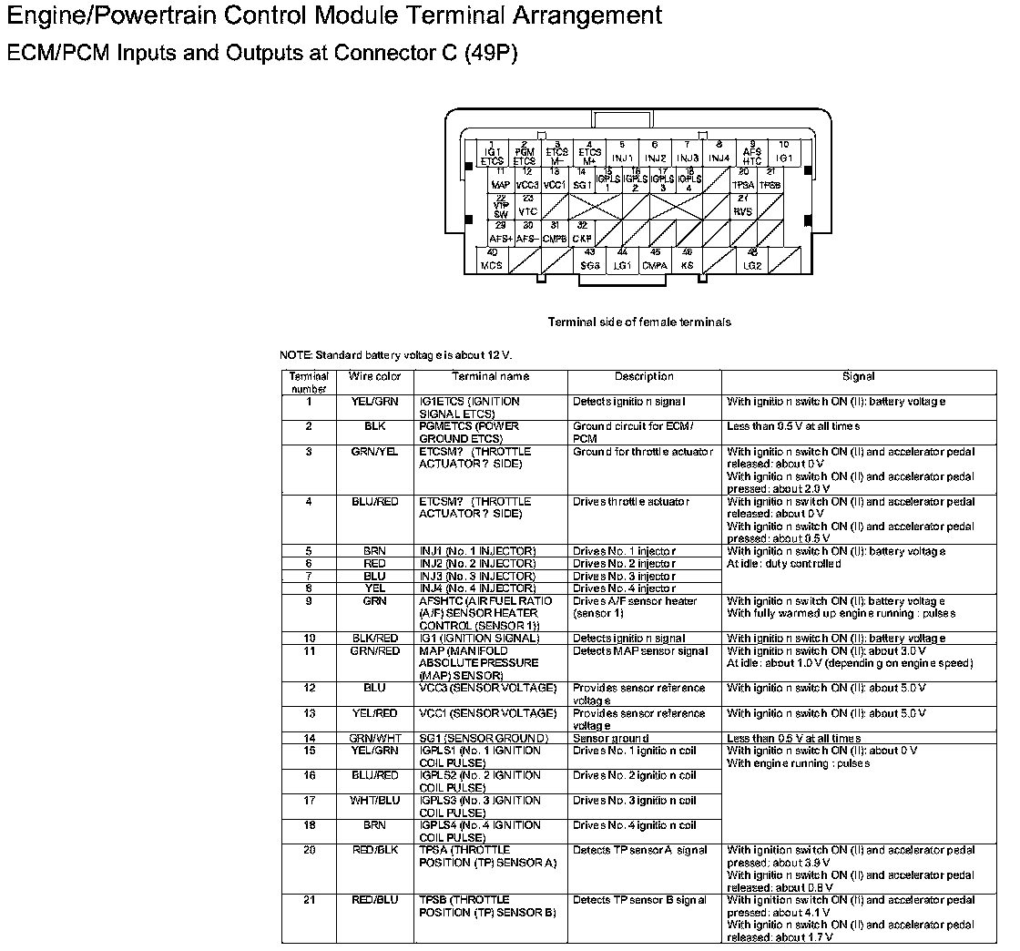 ECM/PCM Inputs And Outputs At Connector C